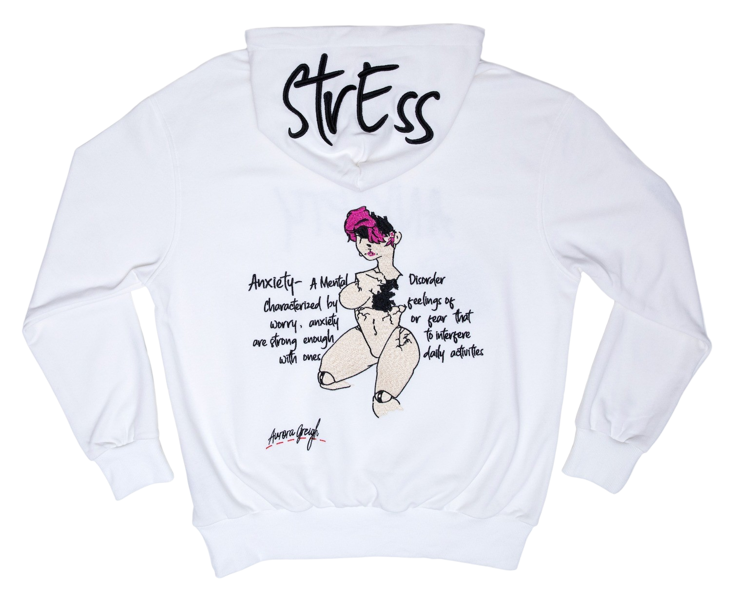 The cracked doll in the family of the honey trap on the trauma hoodie is another hollowed-out persona. However, the symbolism lies in the concept of the doll. It is something being manipulated and fragmented. In this case, that manipulation and fragmenting are caused by stress.